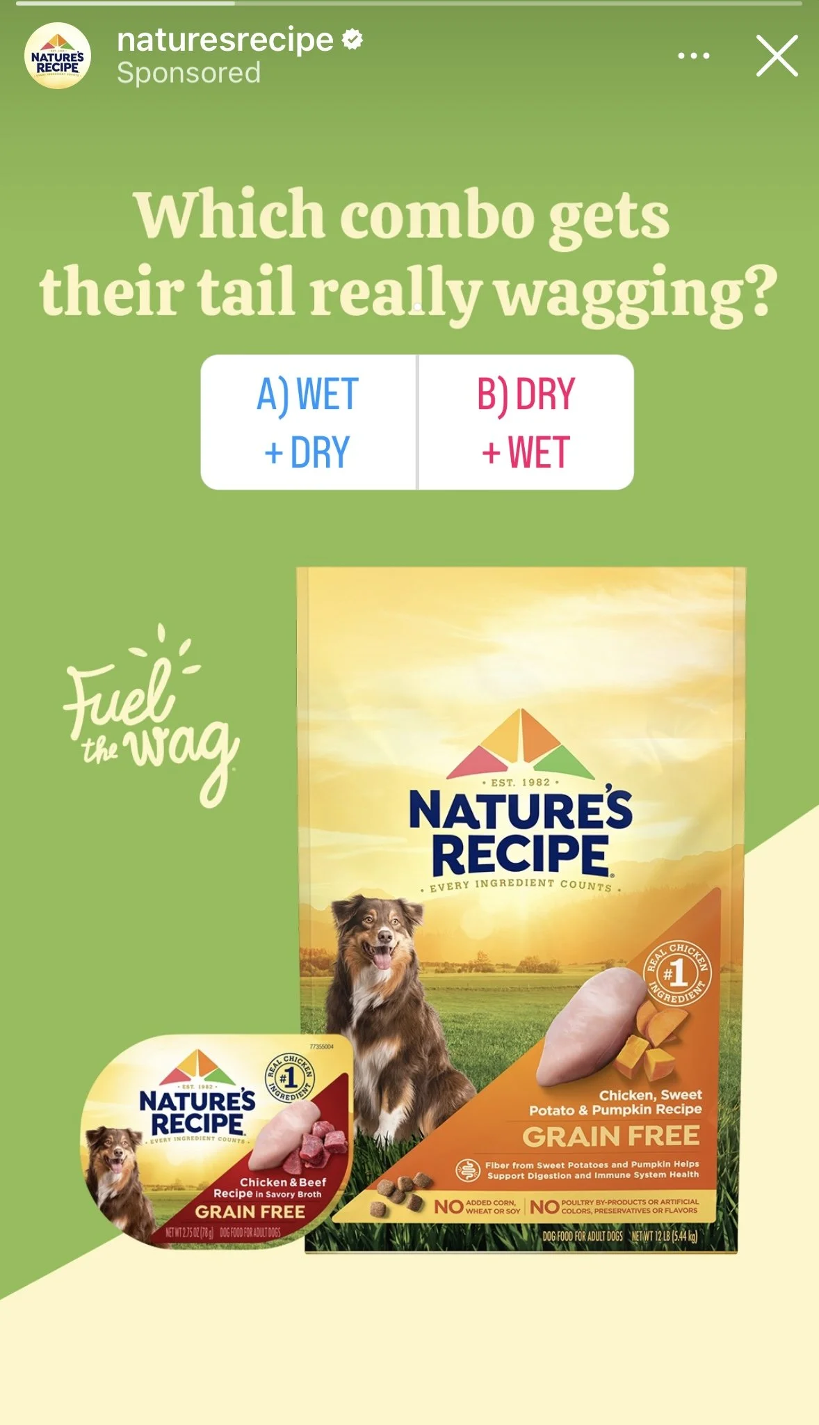 Nature's Recipe fuels the wag of dogs of all sizes with carefully crafted dog food made from wholesome ingredients. As a member of the brand's social media team, I helped create posts that tapped into cultural trends and moments to effectively promote their dog food recipes.